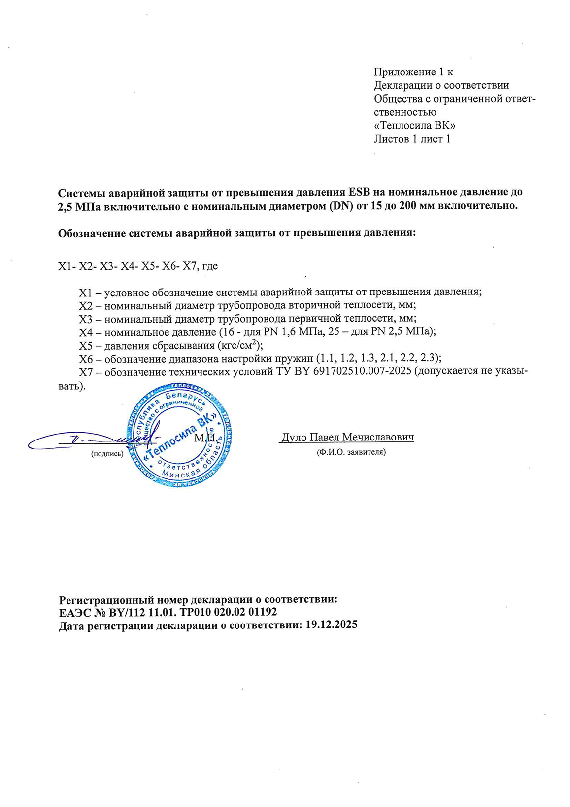 Декларация о соответствии ТР 2009/013/BY